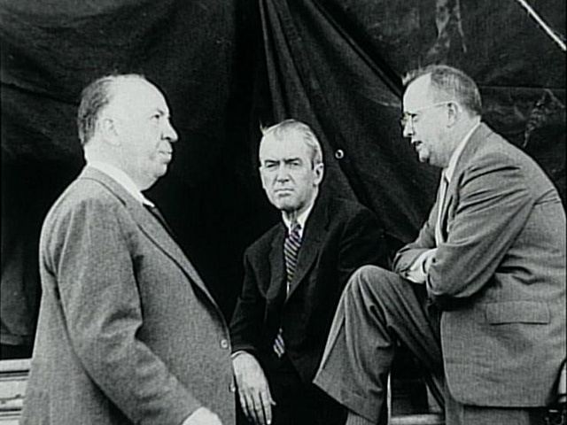 | Com Hitchcock e James Stewart durante a rodagem de "Vertigo" |