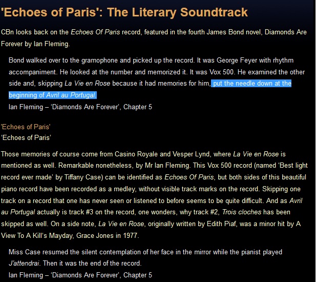 Existe uma referência a "Avril au Portugal" (que foi publicado no período pós-guerra) no livro "Diamonds are Forever" de Ian Fleming.